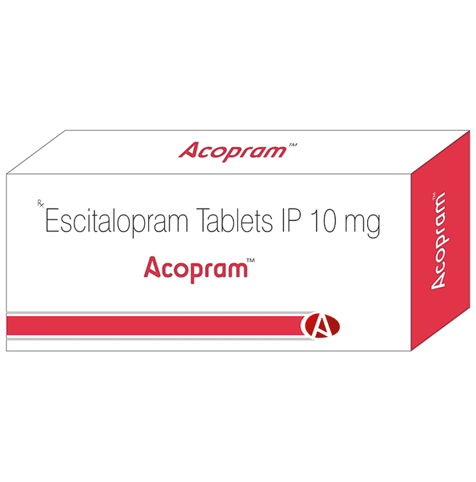 Acopram Tablet is widely prescribed to treat depression and other mental health conditions like anxiety, panic disorder, and obsessive-compulsive disorder. It is a type of antidepressant known as a selective serotonin reuptake inhibitor (SSRI). Acopram Tablet helps recover from depression by improving mood and relieving anxiety and tension. It can be taken with or without food. The dose and how often you need it will be decided by your doctor based on the amount needed to control your symptoms. Your doctor may start you on a lower dose and increase it gradually. Do not change the dose or stop taking it without talking to your doctor, even if you feel well. Doing so may make your condition worse or you may suffer from unpleasant withdrawal symptoms (anxiety, restlessness, palpitations, dizziness, sleep disturbances, etc). To get the most benefit, take this medicine regularly at the same time each day. Your doctor may advise you to take it in the morning if you have trouble sleeping. It may take a few weeks before you start feeling better. Let your doctor know if you do not see any improvement even after 4 weeks. Some common side effects of this medicine include nausea, fatigue, increased sweating, insomnia (difficulty in sleeping), decreased sexual drive, delayed ejaculation, and women may experience difficulties achieving orgasm. Some people may experience sleepiness after taking this medicine. Let your doctor know straight away if you develop any sudden worsening of mood or any thoughts about harming yourself. Before taking Acopram Tablet, you should tell your doctor if you have epilepsy (seizure disorder or fits), diabetes, liver or kidney disease, any heart problems, or are currently taking medicines for depression known as MAO inhibitors. These may affect your treatment. Please tell your doctor about all the medicines you are taking to make sure you are safe.