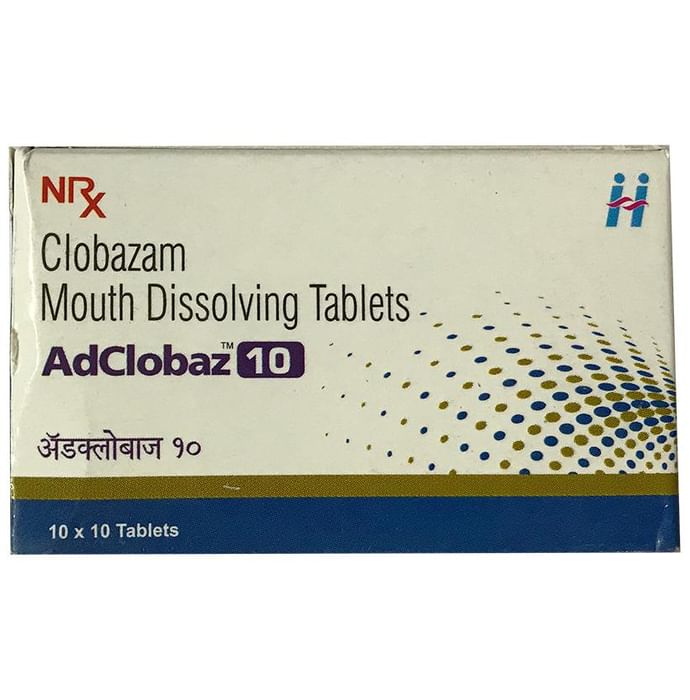 Adclobaz 10 Tablet MD belongs to a class of medicines known as benzodiazepines. It is used to treat epilepsy (seizures) and severe anxiety. It works by suppressing the abnormal and excessive activity of the nerve cells in the brain. Adclobaz 10 Tablet MD may be taken with or without food. However, it is advised to take it at the same time each day as this helps to maintain a consistent level of medicine in the body. Take this medicine in the dose and duration as advised by your doctor as it has a high potential of habit-forming. If you have missed a dose, take it as soon as you remember and finish the full course of treatment even if you feel better. It is important that this medication is not stopped suddenly without talking to your doctor as it may increase seizure frequency. Some common side effects of this medicine include tiredness, slurred speech, fever, cough, drooling, constipation, and difficulty in passing urine. It may cause dizziness and sleepiness, so do not drive or do anything that requires mental focus until you know how this medicine affects you. It is important to consult the doctor if you notice blisters on the skin or inside your mouth. If you have been taking this medicine for a long time then regular monitoring of blood and liver functions may be required.