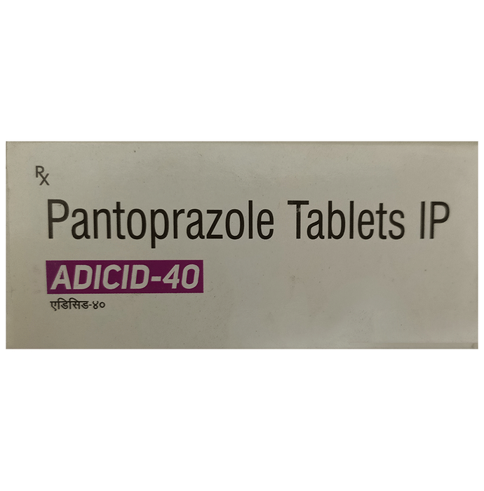 Adicid 40 Tablet is a medicine that reduces the amount of acid produced in your stomach. It is used for treating acid-related diseases of the stomach and intestine such as heartburn, acid reflux, peptic ulcer disease, and some other stomach conditions associated with excessive acid production. Adicid 40 Tablet is also used to prevent stomach ulcers and acidity that may be seen with the prolonged use of painkillers. It belongs to a class of medicines known as proton pump inhibitors (PPIs). This medicine should be taken one hour before a meal, preferably in the morning. The dose will depend on your underlying condition and how you respond to the medicine. You should keep on taking it as prescribed even if your symptoms disappear quickly. You can increase the efficiency of the treatment by eating smaller meals more often and avoiding caffeinated drinks (like tea and coffee), and spicy or fatty foods. The most common side effects observed with this medicine include nausea, vomiting, headache, dizziness, flatulence, diarrhea, and stomach pain. These symptoms are generally mild but if they bother you or do not go away, consult your doctor. Long-term use of this medicine may lead to an increased risk of side effects. For instance, using this medicine for more than 1 year may increase your risk for bone fractures, especially with higher doses. Talk to your doctor about ways to prevent bone loss (osteoporosis), like taking calcium and vitamin D supplements. Before taking this medicine, you need to tell your doctor if you have severe liver problems, are taking medicines for HIV, have ever had an allergic reaction to similar medicines in the past, or suffer from bone loss (osteoporosis). Pregnant or breastfeeding women should also consult their doctor before taking it.