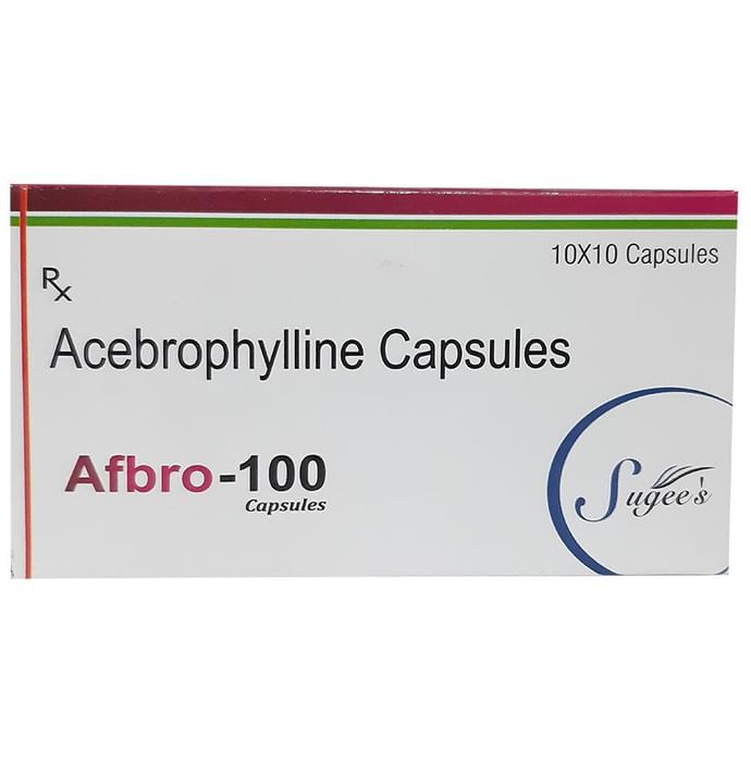 Afbro 100 Capsule is used to treat and prevent symptoms of asthma and chronic obstructive pulmonary disorder (a lung disorder in which flow of air to the lung is blocked). It helps in relaxing the muscles of the air passages, thus widening it and making it easier to breathe. Afbro 100 Capsule can be taken with the food in evening. But take it at the same time every day to get the most benefit. The dose and how often you take it depends on what you are taking it for. Your doctor will decide how much you need to improve your symptoms. You should take this medicine for as long as it is prescribed for you. Do not miss even a single dose, if in any case, you missed a dose, take it as soon as you remember or better to skip the missed dose and continue with regular dosing. It does not work immediately or prevent the already started breathing trouble, hence always carry your medical inhaler with you for an emergency. The most common side effects of this medicine include nausea, headache, vomiting, and abdominal upset or discomfort. If these bother you or appear serious, let your doctor know. There may be ways of reducing or preventing them. Generally, it is advised not to consume alcohol or do not smoke while on treatment. Before taking this medicine, let your doctor if you have kidney or liver disease or if you have heart-related problems. Your doctor should also know about all other medicines you are taking as many of these may make this medicine less effective or change the way it works. Inform your doctor if you are pregnant or breastfeeding before starting the treatment.