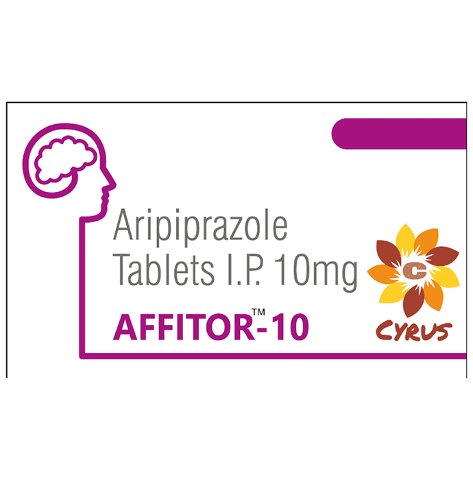 Affitor 10mg Tablet is an antipsychotic medicine. It is used in the treatment of schizophrenia (a mental disorder that can result in hallucinations or delusions and also adversely affects a person’s ability to think and behave) and mania. It can also be used to treat depression and bipolar disorders. Affitor 10mg Tablet may be taken with or without food, preferably in the morning. However, it is advised to take it at the same time each day as this helps to maintain a consistent level of medicine in the body. The dose and how often you need it will be decided by your doctor so that you get the right amount to control your symptoms. It may be increased gradually. It may take a few weeks before you start to feel better. Do not skip any doses and finish the full course of treatment even if you feel better. It is important that this medication is not stopped suddenly without talking to your doctor as this can worsen your symptoms. Some common side effects of this medicine include headache, fatigue, nausea, vomiting and blurred vision. It also causes dizziness and sleepiness, so do not drive or do anything that requires mental focus until you know how this medicine affects you. Please consult your doctor if these side effects do not resolve or worsen. This medicine may increase your blood sugar and cholesterol levels. However, modifying your lifestyle by having a healthy diet and exercising regularly can reduce this side effect. your doctor will monitor your blood sugar and cholesterol levels periodically while you are taking this medication. Inform your doctor if you develop any unusual changes in mood or behavior, new or worsening depression, or suicidal thoughts while taking this medicine. Before taking the medicine you should tell your doctor if you are pregnant, planning to become pregnant, or breastfeeding. You should avoid drinking alcohol as it may increase some side effects.