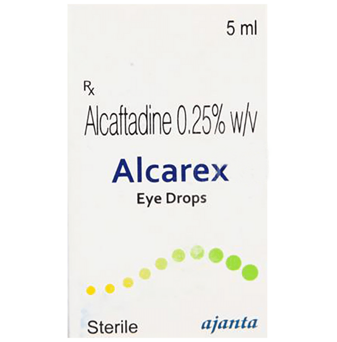 Alcarex Eye Drop is an antihistaminic medication. It is used to treat inflammation of eyes (redness and swelling) caused due to various allergies. It helps in short-term or sudden allergic reactions in the eye. Follow your doctor’s instructions precisely for administering Alcarex Eye Drop in the eye. It should be used regularly at evenly spaced tdime intervals as prescribed by your doctor. Do not skip any doses and finish the full course of treatment even if you feel better. Stopping the medicine too early may lead to the returning or worsening. Commonly seen side effects seen with this medicine include temporary eye irritation and burning sensation after administration. Consult your doctor if these side effects persist or if your condition worsens. It may cause blurring of your vision for a short tdime just after its use, so not drive until your vision is clear.