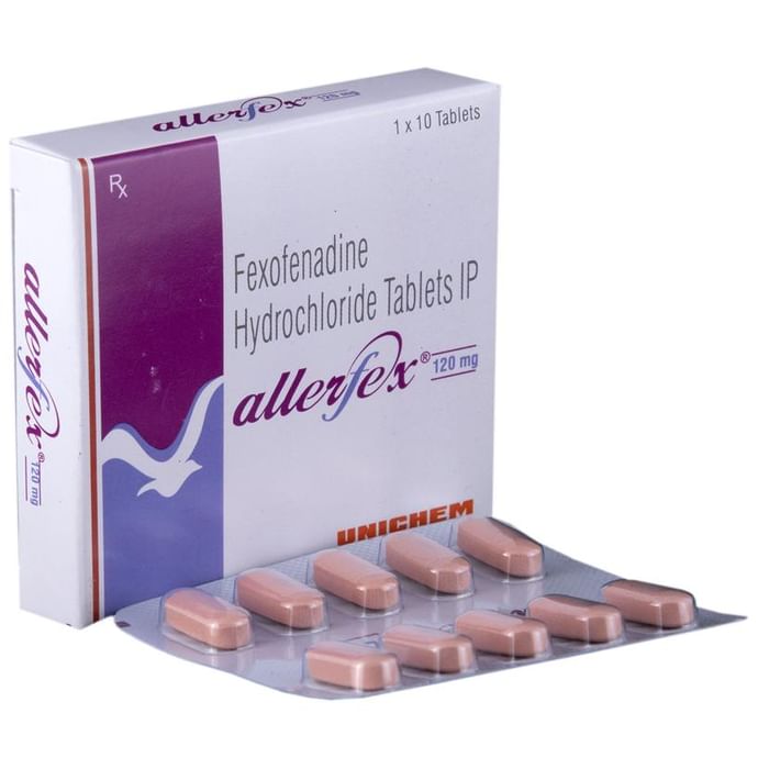 Allerfex 120mg Tablet is an anti-allergy medicine used in the treatment of allergic symptoms such as runny nose, congestion or stuffiness, sneezing, itching, swelling, and watery eyes. It also helps treat skin allergies with itching, redness, or swelling. Allerfex 120mg Tablet may be taken with or without food, in the dose and duration as advised by the doctor. The dose you are given will depend on your condition and how you respond to the medicine. You should keep taking this medicine for as long as your doctor recommends. Do not stop taking it without consulting your doctor. The most common side effects are headache, drowsiness, dizziness, and nausea. Most of these are temporary and usually resolve with time. Please consult your doctor if any of these side effects do not resolve or persist for a longer duration. Do not self-medicate or recommend your medicine to another person even if you see the similarity in symptoms. Consult your doctor to get the most benefit. Inform your doctor if you are suffering from any problems related to the kidneys, liver, or heart. Pregnant and breastfeeding mothers should not take this medicine without consulting a doctor.