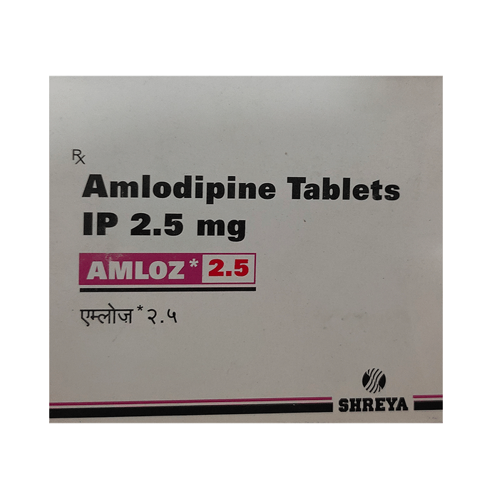 Amloz 2.5 Tablet belongs to a class of medicines known as calcium channel blockers. It is used to treat high blood pressure (hypertension) and prevent angina (heart-related chest pain). It lowers blood pressure and reduces the heart's workload, which helps prevent heart attacks and strokes. Amloz 2.5 Tablet may be prescribed alone or along with other medicines. The dose depends on what you are taking it for and the severity of your condition. You can take it at any time of the day, with or without food, but it is best to take it at about the same time each day. You should take this medicine for as long as it is prescribed for you. Even if you feel well, do not stop this medicine on your own because high blood pressure often has no symptoms. If you stop taking it, your condition may get worse. Keeping yourself active with regular exercise, managing your weight, and eating a healthy diet will also help control your blood pressure. The most common side effects include headache, fatigue, nausea, abdominal pain, and sleepiness. Consult your doctor if any of these side effects bother you or do not go away. They may be able to suggest ways to prevent or reduce the side effects. Before taking it, let your doctor know if you have any liver, heart, or kidney problems. Pregnant or breastfeeding women should also consult their doctor before taking this medicine. You also need to tell your doctor about all the other medicines you are taking, especially those used to treat high blood pressure or heart conditions. You should have your blood pressure checked regularly to make sure that this medicine is working properly.