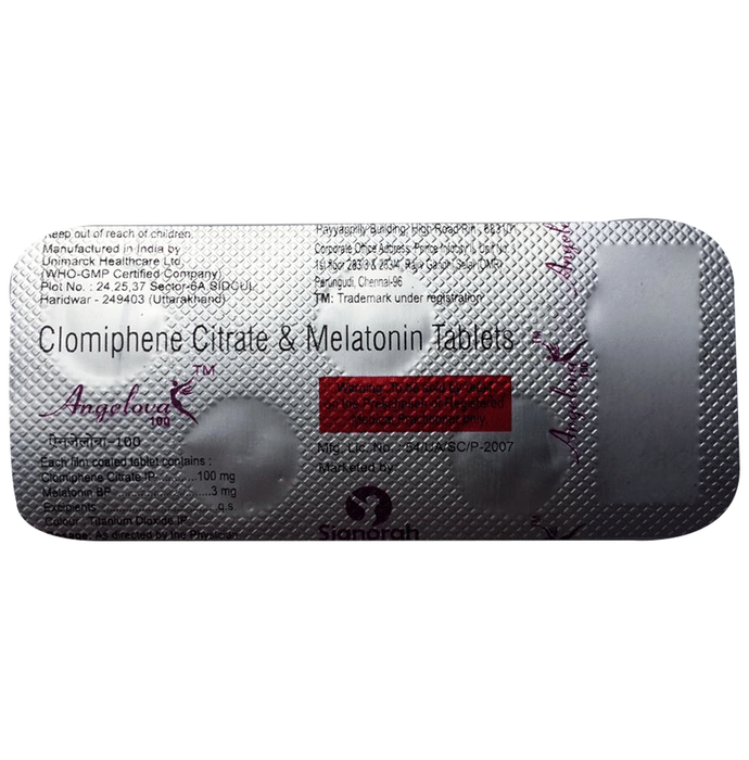 Angelova 100 Tablet is a medicine used to treat female infertility. It increases the chances of pregnancy in women who have a problem with ovulation (release of an egg) or have a condition called polycystic ovary syndrome (PCOS). Angelova 100 Tablet should be taken with or without food, preferably at a fixed time each day. It should be taken as advised by the doctor. The dose and how often you take it depends on what you are taking it for. The medicine is not recommended for a longer period. Some common side effects of this medicine include vomiting, hot flashes, headache and nausea. If these bother you or appear serious, let your doctor know. There may be ways of reducing or preventing them. This medicine may cause problems with your eyesight, so be cautious before driving or using machines. Before taking medicine, tell your doctor if you are breastfeeding, if you have ever had any problem of vaginal bleeding or liver or thyroid problem. Your doctor should also know about all other medicines you are taking as many of these may make this medicine less effective or change the way it works.