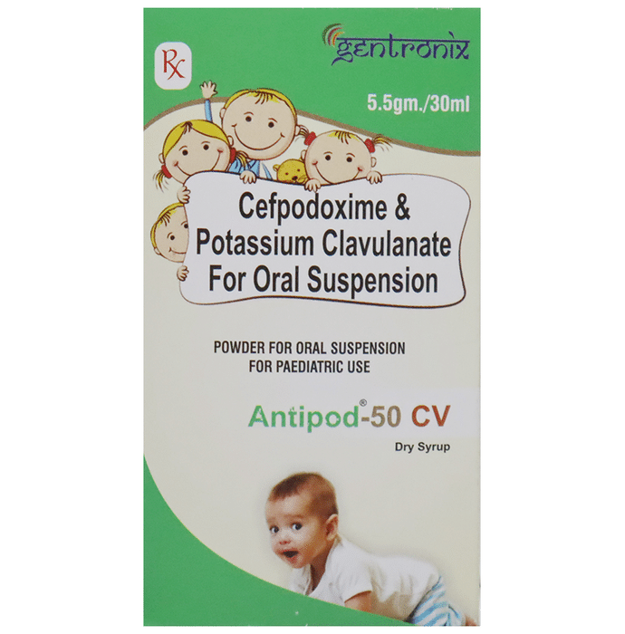 In Treatment of Respiratory tract infection Respiratory tract infections are those infections that can affect the sinuses, throat, airways or lungs. Antipod 50 CV Dry Syrup contains two different medicines, Cefpodoxime Proxetil and Clavulanic Acid, that work together to kill the bacteria that cause respiratory tract infections. Cefpodoxime Proxetil works by stopping the growth of bacteria. Clavulanic Acid reduces resistance and enhances the activity of Cefpodoxime Proxetil against bacteria. It usually makes you feel better within a few days, but you should continue taking it as prescribed even when you feel better to make sure that all bacteria are killed and do not become resistant.