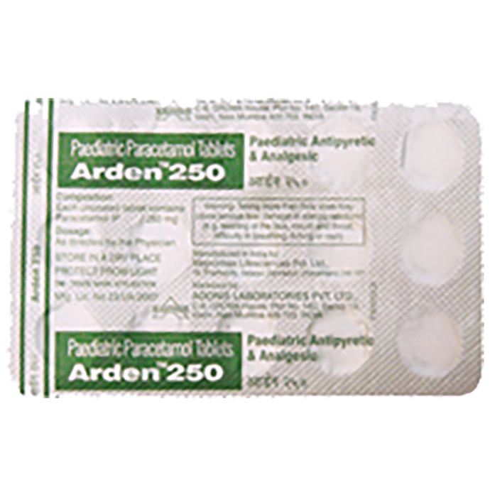 In Pain relief Arden 250mg Tablet is a common painkiller used to treat aches and pains. It works by blocking chemical messengers in the brain that tell us we have pain. It is effective in relieving pain caused by headache, migraine, nerve pain, toothache, sore throat, period (menstrual) pains, arthritis, and muscle aches. This medicine is very widely used and very rarely causes side effects if taken at the right dosage. Take it as it is prescribed to get the most benefit. Do not take more or for longer than needed as that can be dangerous. In general, you should take the lowest dose that works, for the shortest possible time. It is also the first choice of painkiller during pregnancy or breastfeeding. In Treatment of Fever Arden 250mg Tablet is also used to reduce a high temperature (fever). It works by blocking the release of certain chemical messengers that cause fever. It may be prescribed alone or in combination with another medicine. You should take it regularly as advised by your doctor.