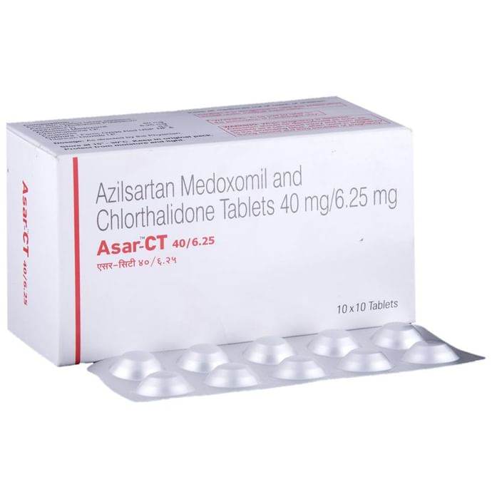 Asar-CT 40/6.25 Tablet is a combination medicine used in the treatment of hypertension (high blood pressure). It works by relaxing the blood vessels and making the heart more efficient at pumping blood throughout the body. It also removes extra water and certain electrolytes from the body. Asar-CT 40/6.25 Tablet can be taken with or without food, but take it at the same time to get the most benefit. It should be taken as your doctor's advice. The dose and how often you take it depends on what you are taking it for. Never skip any doses and finish a full course of treatment even if you feel better. It is important that this medication is not stopped suddenly without talking to the doctor as it may worsen your symptoms. It may cause side effects like tiredness, decreased potassium level in blood, decreased blood pressure, increased creatinine level in blood, and increased uric acid level in blood. It is advised to drink plenty of fluids while taking this medicine. It may cause dizziness, so do not drive or do anything that requires mental focus until you know how this medicine affects you. Regular monitoring of blood pressure is required while taking this medicine. Before taking this medicine, tell your doctor if you are pregnant or breastfeeding if you have ever had any problems with your blood circulation or have liver or kidney problems. Your doctor should also know about all other medicines you are taking as many of these may make this medicine less effective or change the way it works.