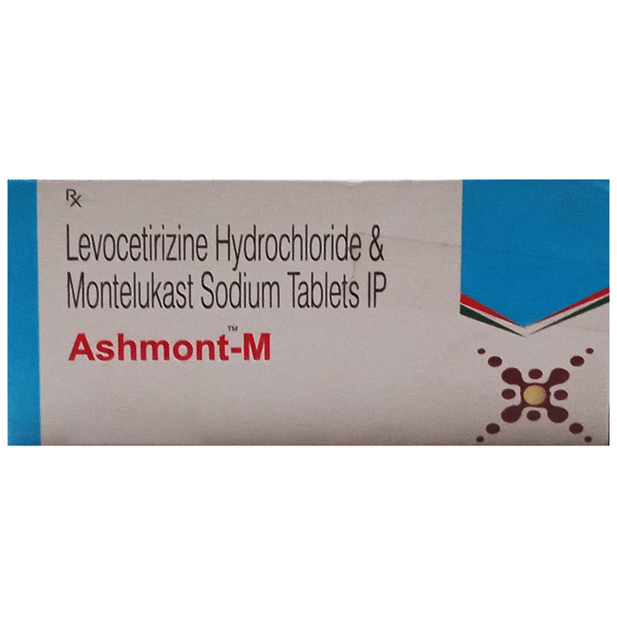 Ashmont-M Tablet is a combination medicine used in the treatment of allergic symptoms such as runny nose, stuffy nose, sneezing, itching, swelling, watery eyes and congestion or stuffiness. It also reduces inflammation in the airways and make breathing easier. Ashmont-M Tablet is taken with or without food in a dose and duration as advised by the doctor. The dose you are given will depend on your condition and how you respond to the medicine. You should keep taking this medicine for as long as your doctor recommends. If you stop treatment too early your symptoms may come back and your condition may worsen. Let your healthcare team know about all other medications you are taking as some may affect, or be affected by this medicine. The most common side effects are nausea, diarrhea, vomiting, dryness in the mouth, headache, skin rash, flu-like symptoms, and fatigue. Most of these are temporary and usually resolve with time. Contact your doctor straight away if you are at all concerned about any of these side effects. This medicine may cause dizziness and sleepiness, so do not drive or do anything that requires mental focus until you know how this medicine affects you. Avoid drinking alcohol while taking this medicine as it can worsen your sleepiness. Never support self-medication or recommend your medicine to another person. It is beneficial to have plenty of fluids while taking this medication. Before you start taking this medicine it is important to inform your doctor if you are suffering from kidney disease.