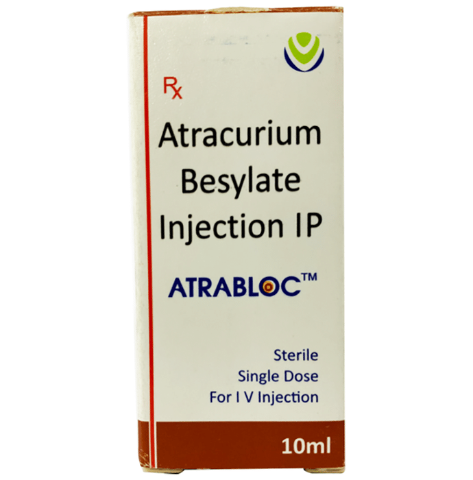 Atrabloc 10mg Injection belongs to a group of medicines called muscle relaxants. It is used along with general anesthesia or sedatives to provide skeletal muscle relaxation during surgical procedures. It is also used to facilitate emergency airway management in patients in intensive care. Atrabloc 10mg Injection is generally administered by a healthcare professional. You should not self-administer this medicine at home. The dose and duration will depend on what you are taking it for and how well it helps your symptoms. The most common side effects of this medicine include skin flush, skin redness, and itching. It may also cause pain, redness, and swelling at the site of injection. If any of these side effects persist or worsen, you should let your doctor know. Your doctor may be able to suggest ways of preventing or reducing the symptoms. Before using it, you should let your doctor know if you have any medical conditions or disorders. You should also tell your doctor all the other medicines you are using or taking. Pregnant and breastfeeding women should consult their doctors before using this medicine.