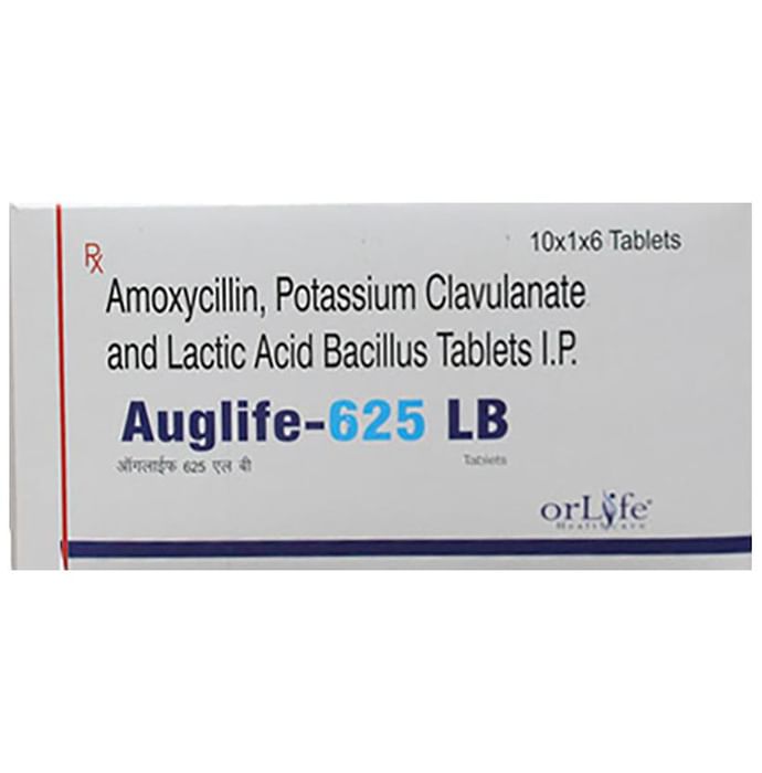 Auglife 625 LB Tablet is a combination medicine that is used to treat various types of bacterial infections. It fights against the microorganisms to prevent their growth and further spread of the infection. It also prevents diarrhea which may occur as side effect of this medicine. Auglife 625 LB Tablet is a prescription medicine. It is advised to take it as per the prescription. It can be taken with or without food, but it must be taken at a fixed time to ensure better efficacy. Do not consume more than the recommended dose, as this may have harmful effects on your body. If you miss a dose, take it as soon as you remember. The course of the treatment must be completed even if you feel better. Sudden discontinuation of the treatment may affect the potency of the medicine. Some common side effects of this medicine are nausea, vomiting, diarrhea, indigestion, etc. If any of the side effects get aggravated, you must consult your doctor immediately. If you experience any allergic reaction (rashes, itching, swelling, shortness of breath, etc.), you must seek immediate medical help. Before taking this medicine, you should tell your doctor if you are taking any medicines for any health condition. Pregnant or breastfeeding women should also consult with their doctor before taking it. Avoid drinking alcohol as it can cause excessive drowsiness with this medicine. It usually does not impair your ability to drive, but you should not drive if it makes you feel sleepy or dizzy. You must take adequate rest for a faster recovery, also take a healthy diet and drink plenty of water. Your doctor may ask for a few laboratory and diagnostic tests to know the effects of the medicine on your body.