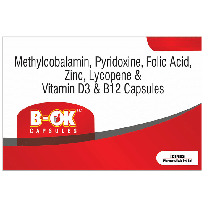 :Methylcobalamin (1500mcg) + Folic Acid (1.5mg) + Vitamin B6 (Pyridoxine) (3mg) + Vitamin D3 (1000IU) + Niacinamide (50mg) + Zinc Oxide (12.5mg) + Copper Sulphate (indimedo) + Lycopene (5000mcg) + Vitamin B12 (15mcg)