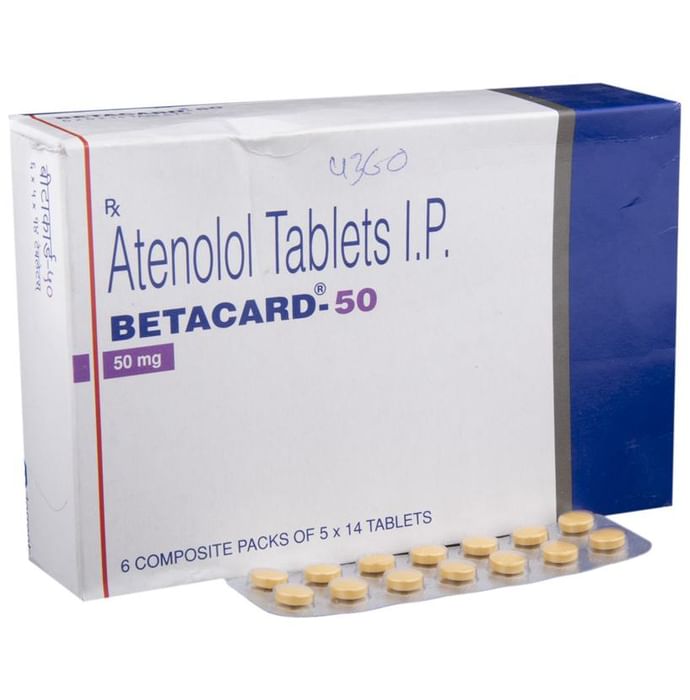 Betacard 50 Tablet belongs to a group of medicines called beta-blockers. It is used to treat high blood pressure (hypertension), angina (heart-related chest pain), irregular heart rhythms (arrhythmia). It also helps to prevent future heart attacks and stroke and migraines. Betacard 50 Tablet is also used to relieve the symptoms caused by an overactive thyroid gland. It may be prescribed alone or together with other medications. The dose and frequency depend on what you are taking it for and the severity of your condition. It may be taken empty stomach or with a meal, but take it regularly at the same time each day to get the most benefit. It may take several weeks before you get the full benefit of this medicine and you may need to take it for the rest of your life. However, it is important to continue taking it even if you feel well. Most people with high blood pressure do not feel ill and if you stop taking it, your condition may worsen. The main side effects of this medicine are fatigue, slow heart rate, feeling dizzy, diarrhea, and nausea. These are usually mild and short-lived. It may also cause shortness of breath or low blood pressure in some people. To reduce the risk of side effects your doctor will probably start the medicine at a low dose and gradually increase it. Consult your doctor if the side effects bother you or do not go away. Before taking it, let your doctor know if you have any liver problems. It may also not be suitable for people who have a slow heart rate, severe circulation problems, severe heart failure, or low blood pressure. Pregnant or breastfeeding mothers should also consult their doctor before taking it. You must talk to your doctor to find out whether this medicine is suitable for you to use. You should have your blood pressure checked regularly to make sure that this medicine is working properly. Avoid drinking alcohol as it may increase certain side effects.