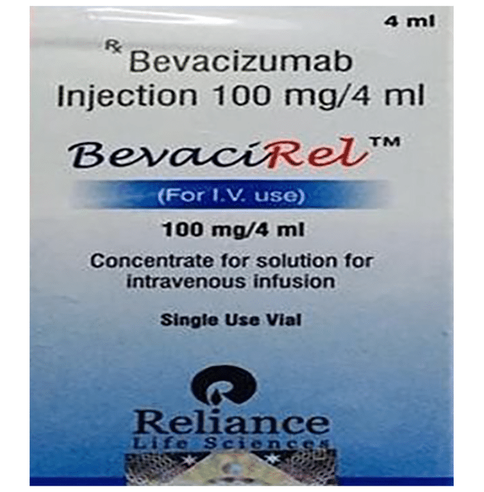 Bevacirel 100mg Injection is an anticancer medication. It is used in the treatment of cancer of colon and rectum, non-small cell lung cancer, kidney cancer, brain tumor, ovarian and cervical cancer. It helps to prevent the growth of new blood vessels that feed tumors and stops tumors from growing. Bevacirel 100mg Injection is an effective medicine, first-line option when used together with other cancer medicines. It is given as an infusion. That means you get it through a small needle in your vein or through a port, which is a device placed under your skin. The doctor will decide your dose and duration and will check you for signs of an infusion reaction such as high blood pressure and trouble breathing. You keep taking Bevacirel 100mg Injection as long as your disease is controlled and your side effects are manageable. Your doctor will determine whether you should stop taking it or not. You may be advised to check blood pressure and levels of protein in urine while you are taking this medication. The most common side effects of this medicine include rectal bleeding, taste change, and headache. Inform your doctor that you are taking this medication before undergoing any surgical procedure, as the drug has ability to lower the ability of wound healing. Other than this, it also enhances your risk of bleeding thus if you notice any unusual bleeding or bleeding consult with your doctor immediately. Inform your doctor if you are pregnant, planning pregnancy or breastfeeding. Many other medicines can affect, or be affected by, this medicine so let your healthcare team know all medications you are using.