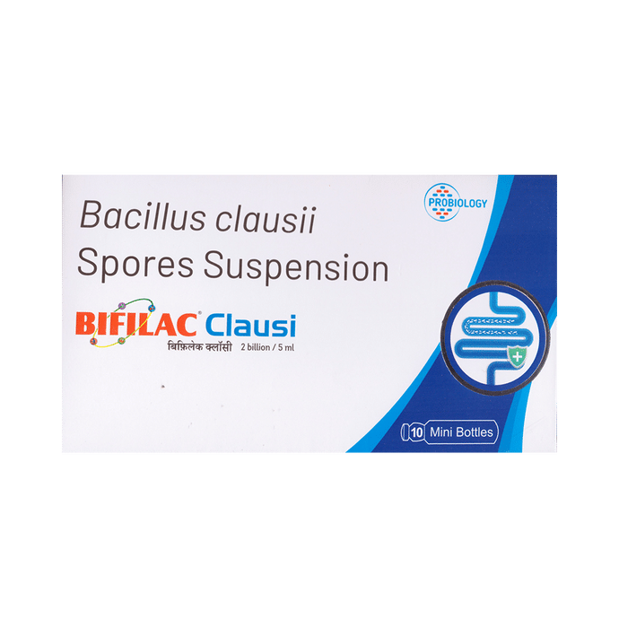 Bifilac Clausi Oral Suspension (5ml Each) is a prescription medicine used in the treatment of diarrhea. This medicine is a probiotic. and it works by restoring the balance of good bacteria in the intestine that may get upset after antibiotic use or due to intestinal infections. Bifilac Clausi Oral Suspension (5ml Each) should be taken in a dose and duration as advised by your doctor. You may take this medicine along with oral rehydration solution (ORS) as it will also help to provide adequate fluid and electrolyte replacement. In case you have missed a dose take it as soon as you remember it and try to finish the full course of treatment. Remember to consult doctor while taking any other medicine specially steroids or antibiotic along with this medicine. It is an effective medicine with very little or no side effects however it may cause bloating and flatulence.