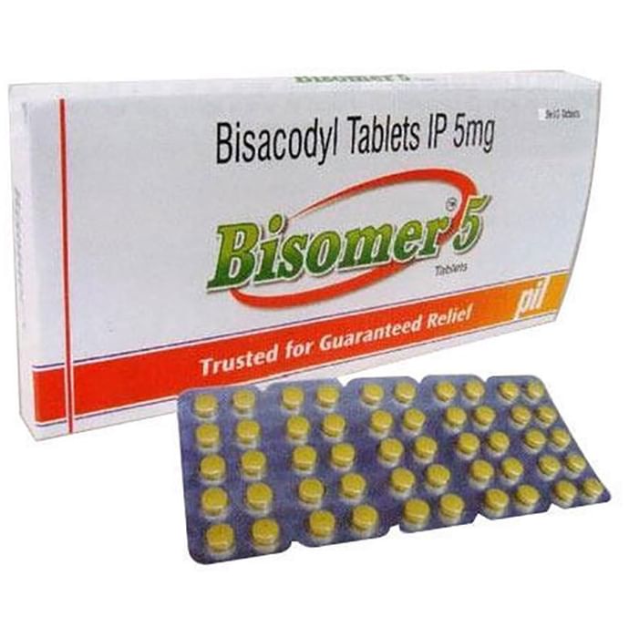 Bisomer 5mg Tablet is a medicine used to treat constipation. It is a laxative and helps you empty your bowels. Sometimes it is used by hospitals before surgery or some internal examinations or treatments. It works by increasing the movement in the intestine. Bisomer 5mg Tablet is best taken at night when it is used to treat constipation. It should be swallowed whole and must not be chewed, broken or crushed. It is recommended to start with the lowest dose and increase if you need to, but do not exceed the maximum daily dose. You should not use this medicine for more than the recommended days unless your doctor tells you to. Some lifestyle changes can help with constipation, for example drinking plenty of fluids, exercise regularly, eating more fiber-rich foods such as fruits, vegetables, and cereals. The most common side effects of taking this medicine are vomiting, stomach pain, and nausea. These are usually mild and go away after a couple of days. If they persist, your doctor may suggest ways of preventing or reducing them. Before using this medicine you should tell your doctor if you have a blockage in your bowel, upset stomach or your bowel movements have been different for more than two weeks. Some medicines and some foods can interfere with the way this medicine works so discuss this with your doctor to make sure you are safe. You should not normally take other treatments for constipation while using this medicine and should also avoid dairy products at the same time. Bisomer 5mg Tablet is not generally recommended if you are pregnant or breastfeeding.