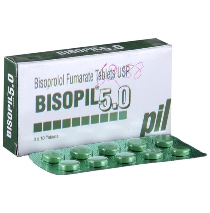 Bisopil 5.0 Tablet belongs to a group of medicines called beta-blockers. It is used to treat high blood pressure (hypertension), angina (heart-related chest pain), irregular heart rhythms (arrhythmia). It also helps to prevent future heart attacks and migraines. Bisopil 5.0 Tablet is also used to relieve the symptoms caused by an overactive thyroid gland. It may be prescribed alone or together with other medications. The dose and frequency depend on what you are taking it for and the severity of your condition. It may be taken empty stomach or with a meal, but take it regularly at the same time each day to get the most benefit. It may take several weeks before you get the full benefit of this medicine and you may need to take it for the rest of your life. However, it is important to continue taking it even if you feel well. Most people with high blood pressure do not feel ill and if you stop taking it, your condition may worsen. The main side effects of this medicine are fatigue, headache, slow heart rate, dizziness, and nausea. These are usually mild and short-lived. It may also cause shortness of breath or low blood pressure in some people. To reduce the risk of side effects your doctor will probably start the medicine at a low dose and gradually increase it. Consult your doctor if the side effects bother you or do not go away. Before taking it, let your doctor know if you have any liver problems. It may also not be suitable for people who have a slow heart rate, severe circulation problems, severe heart failure, or low blood pressure. Pregnant or breastfeeding mothers should also consult their doctor before taking it. You should have your blood pressure checked regularly to make sure that this medicine is working properly. Avoid drinking alcohol as it may increase certain side effects.