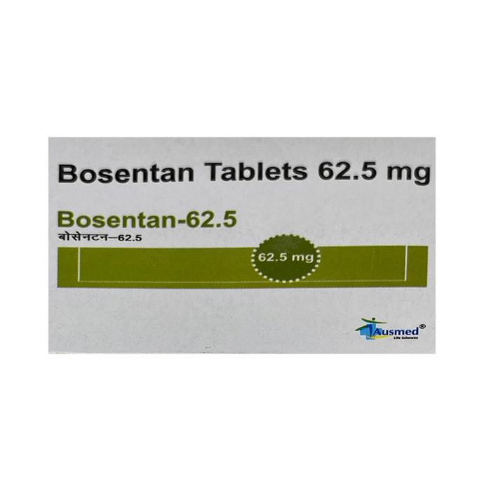 Bosentan 62.5 Tablet is a prescription medicine used to treat pulmonary arterial hypertension (high pressure in the blood vessels that carry blood from the heart to the lungs). It even helps to improve your quality of life, exercising ability and delay in disease progression. Bosentan 62.5 Tablet should be taken with or without food. This medicine should be used regularly to get the most benefit from it. The dose and how often you take it depends on what you are taking it for. Your doctor will decide how much you need to improve your symptoms. You should take this medicine for as long as it is prescribed for you. The most common side effects of this medicine include headache, swelling of the legs and ankles, and diarrhea. If these bother you or appear serious, let your doctor know. There may be ways of reducing or preventing them. Some serious side effects which mean your doctor should know immediately include Anemia (low number of red blood cells) and abnormal liver function such as nausea, vomiting, dark urine, fever, and dark urine. Your doctor might check you for blood tests to check for anemia and liver function. Before taking this medicine, let your doctor know if you have liver dysfunctioning. Inform your doctor if you are pregnant or breastfeeding. Women are suggested to use reliable contraceptive pills to avoid pregnancy and should continue even after one month of stopping the treatment. Your doctor should also know about all other medicines you are taking as many of these may make this medicine less effective or change the way it works.