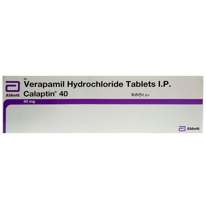 Calaptin 40 Tablet is used to treat angina (heart-related chest pain), high blood pressure, and some types of irregular heartbeats (arrhythmia). It works by relaxing blood vessels to lower blood pressure. This helps to reduce the workload of the heart. Calaptin 40 Tablet may be taken with or without food, but it is better to take it regularly at a fixed time each day as advised by your doctor. Keep using this medicine even if you feel well. If you stop taking it suddenly, your condition may worsen. This medicine is only part of a treatment program that should include a healthy diet, regular exercise, and weight reduction as advised by your doctor. The most common side effects of this medicine include constipation, dizziness, nausea, hypotension, and headache. These are usually mild and disappear after a short time. Consult your doctor if they bother you or do not go away. Drinking alcohol should be avoided while taking this medicine as it may worsen the side effects. Before taking this medicine, let your doctor know if you have any liver or kidney problems. Also, inform your doctor if you have very low blood pressure (hypotension), heart failure, or if you recently had a heart attack and have fluid in your lungs. Your doctor may want to monitor your blood pressure while using it and you may need frequent blood tests. Pregnant or breast-feeding women should consult their doctor before taking it.