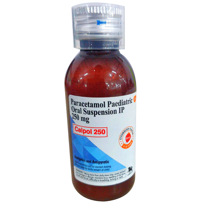 In Pain relief Calpol 250mg Paediatric Oral Suspension Strawberry is a common painkiller used to treat aches and pains. It works by blocking chemical messengers in the brain that tell us we have pain. It is effective in relieving pain caused by headache, migraine, nerve pain, toothache, sore throat, period (menstrual) pains, arthritis, and muscle aches. This medicine is very widely used and very rarely causes side effects if taken at the right dosage. Take it as it is prescribed to get the most benefit. Do not take more or for longer than needed as that can be dangerous. In general, you should take the lowest dose that works, for the shortest possible time. It is also the first choice of painkiller during pregnancy or breastfeeding. In Treatment of Fever Calpol 250mg Paediatric Oral Suspension Strawberry is also used to reduce a high temperature (fever). It works by blocking the release of certain chemical messengers that cause fever. It may be prescribed alone or in combination with another medicine. You should take it regularly as advised by your doctor.