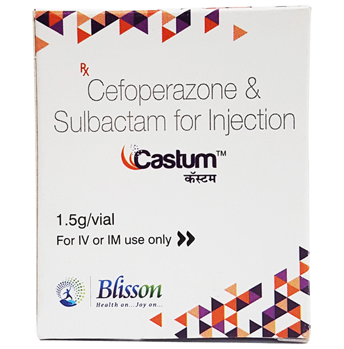 In Treatment of Bacterial infections Castum Injection contains two different medicines, Cefoperazone and Sulbactum, that work together to kill the bacteria that cause infections. Cefoperazone works by stopping the growth of bacteria. Sulbactam reduces resistance and enhances the activity of Cefoperazone against bacteria. Castum Injection can be used to treat many different bacterial infections such as ear, sinus, throat, lung, urinary tract, skin and soft tissues. This medicine usually makes you feel better within a few days, but you should continue taking it as prescribed even when you feel better to make sure that all bacteria are killed and do not become resistant.
