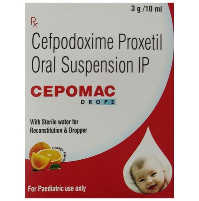 Cepomac Oral Drop Orange is an antibiotic medicine used to treat bacterial infections in your body. It is effective in infections of the lungs (eg. pneumonia), urinary tract, ear, nasal sinus, throat, and skin. It kills bacteria, which helps to improve your symptoms and cure the infection. Cepomac Oral Drop Orange should be taken with food. You should take it regularly at evenly spaced intervals as per the schedule prescribed by your doctor. Taking it at the same time every day will help you to remember to take it. The dose will depend on what you are being treated for, but you should always complete a full course of this antibiotic as prescribed by your doctor. Do not stop taking it until you have finished, even when you feel better. If you stop taking it early, some bacteria may survive and the infection may come back. It will not work for viral infections such as flu or the common cold. Using any antibiotic when you do not need it can make it less effective for future infections. The most common side effects of this medicine include rash, nausea, and diarrhea. Taking this medicine along with some food may help to prevent indigestion and upset stomach. Consult your doctor if you find these side effects bother or worry you. Before using it, you should tell your doctor if you are allergic to any antibiotics or have any kidney or liver problems. This medicine is generally regarded as safe to use in pregnancy and breastfeeding if prescribed by your doctor. It may blur your vision or make you feel sleepy and dizzy. Do not drive if these symptoms occur.