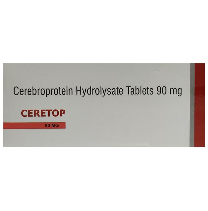 Ceretop 90mg Tablet is a prescription medicine used in the treatment of stroke, head injury, and Alzheimer's disease. It may be used alone or in combination with other medicines, depending on the illness it is being used for. Ceretop 90mg Tablet may be taken with or without food. However, it is advised to take it at the same time each day as this helps to maintain a consistent level of medicine in the body. Take this medicine in the dose and duration as advised by your doctor. Do not stop taking it suddenly without talking to your doctor as it may worsen your symptoms. Some common side effects that may be seen with this medicine include headache, nausea, vertigo, increased sweating, agitation, fever, hallucinations, confusion. However, these are temporary and usually resolve on their own. Consult your doctor if these do not subside or get worse. Before taking this medicine, inform your doctor if you ever had any problems with your kidneys or if you have or ever had any seizures (epilepsy or fits). Your dose depends on your age and the condition you are being treated for. Always let your doctor know about all the medicines that you are taking before you start with your treatment. Please inform your doctor if you are pregnant, planning to conceive or breastfeeding, before using this medicine.