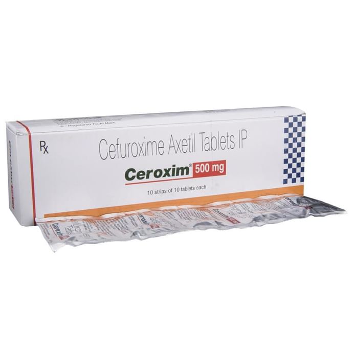 Ceroxim 500mg Tablet is an antibiotic medicine used to treat bacterial infections in your body. It is effective in infections of the lungs (e.g., pneumonia), ear, throat, nasal sinus, urinary tract, skin, soft tissues, bones, and joints. It is also used to prevent infections during surgery. Ceroxim 500mg Tablet should be taken with food to avoid an upset stomach. You should take it regularly at evenly spaced intervals as per the schedule prescribed by your doctor. Taking it at the same time every day will help you to remember to take it. The dose will depend on what you are being treated for, but you should always complete a full course of this antibiotic as prescribed by your doctor. Do not stop taking it until you have finished, even when you feel better. If you stop taking it early, some bacteria may survive and the infection may come back. It will not work for viral infections such as flu or the common cold. Using any antibiotic when you do not need it can make it less effective for future infections. The most common side effects of this medicine include rash, vomiting, increased liver enzymes, nausea, and diarrhea. These are usually mild but let your doctor know if they bother you or last more than a few days. Before using it, you should tell your doctor if you are allergic to any antibiotics or have any kidney or liver problems. You should also let your doctor know all other medicines you are taking as they may affect, or be affected by this medicine. Pregnant and breastfeeding mothers should consult their doctor before using it.