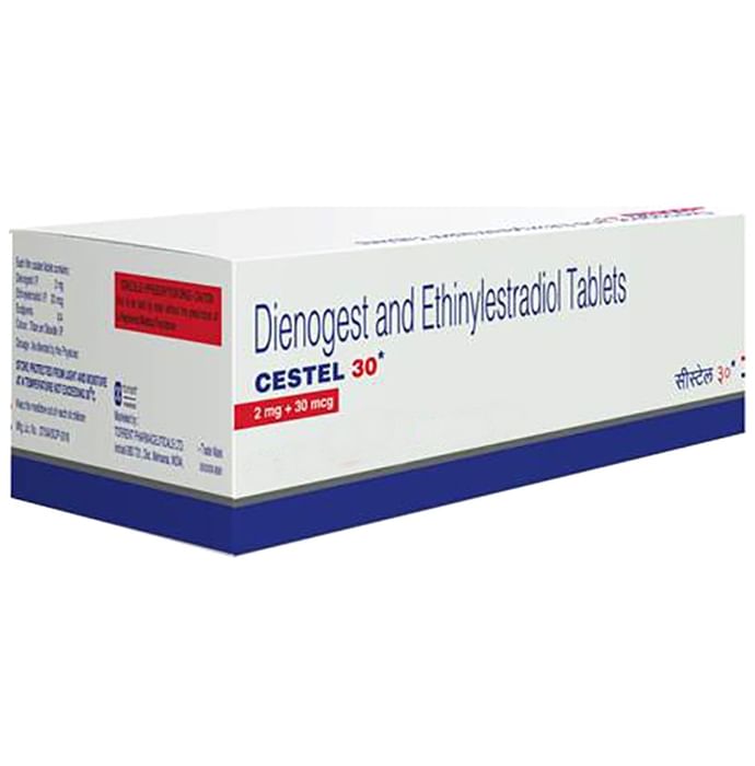 Cestel 30 Tablet is used to prevent pregnancy. It is a birth control pill that contains estrogen and progestin hormones. It works by stopping the complete development of a woman's egg each month. Cestel 30 Tablet can be taken with or without food, but take it at the same time to get the most benefit. It should be taken as per your doctor's advice. You will have to take the pill on day one of your menstrual cycle and continue taking it for a whole month. Once the pack gets over, start with a new one. If you experience vomiting within 4 hours of dose intake, take another tablet. In case you missed your dose and you are late by 12 hours in taking the missed dose, use a condom during intercourse for a period of 2 days. If you experience stomach upset, then start taking it with food in the evening or at bedtime. Headache, breast pain, nausea, and acne are some commonly seen side effects of this medicine. If these bother you or appear serious, let your doctor know. There may be ways of reducing or preventing them. You might experience spotting or bleeding between menstrual periods or missed periods. Consult with your doctor if this occurs frequently or persists longer. It might increase your blood pressure, monitor your blood pressure regularly. Before taking this medicine, let your doctor know if you smoke and are over 35, or if you have ever had a heart attack or have cancer of uterus/cervix, or vagina. Your doctor should also know about all other medicines you are taking as many of these may make this medicine less effective or change the way it works. Do not take the medicine if you are pregnant already or breastfeeding.