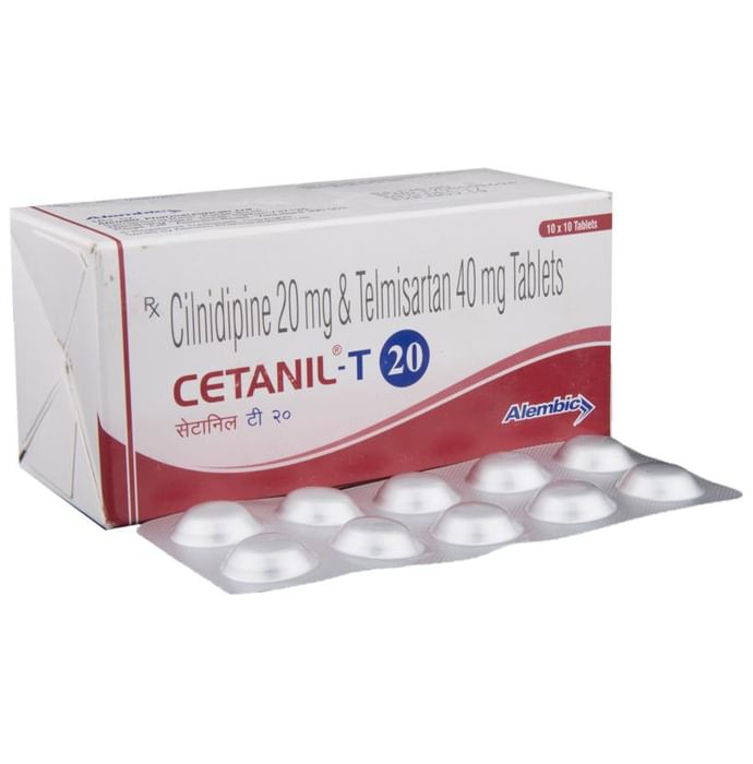 Cetanil T 20 Tablet contains two medicines, both of which help to control high blood pressure. It lowers the blood pressure by relaxing the blood vessels and making it easier for your heart to pump blood around your body. This will reduce your risk of having a heart attack or a stroke. Cetanil T 20 Tablet may be taken on an empty stomach or along with food. However, it is better to take it regularly at a fixed time each day, as prescribed by your doctor. The dose will depend on your condition and how you respond to the medicine. It’s important to keep taking this medicine even if you feel well. By lowering your blood pressure, it is reducing your risk of heart attack or stroke so do not stop taking it unless your doctor tells you to. You can help this medication work better by making a few changes to your lifestyle such as keeping active, stopping smoking, and eating a low salt and low-fat diet. The most common side effects of this medicine include swelling in your ankles or feet (edema), headache, sleepiness, dizziness, tiredness, taste change, and upset stomach. Since it may cause sleepiness and dizziness, do not drive or do anything requiring concentration until you know how it affects you. Talk to your doctor if any of the side effects bother you or will not go away. Before taking this medicine, let your doctor know if you have any kidney or liver problems or severe dehydration. Pregnant or breastfeeding women should also consult their doctor before taking it. While using this medicine, your blood pressure will need to be checked often and your kidney function may also need to be tested.