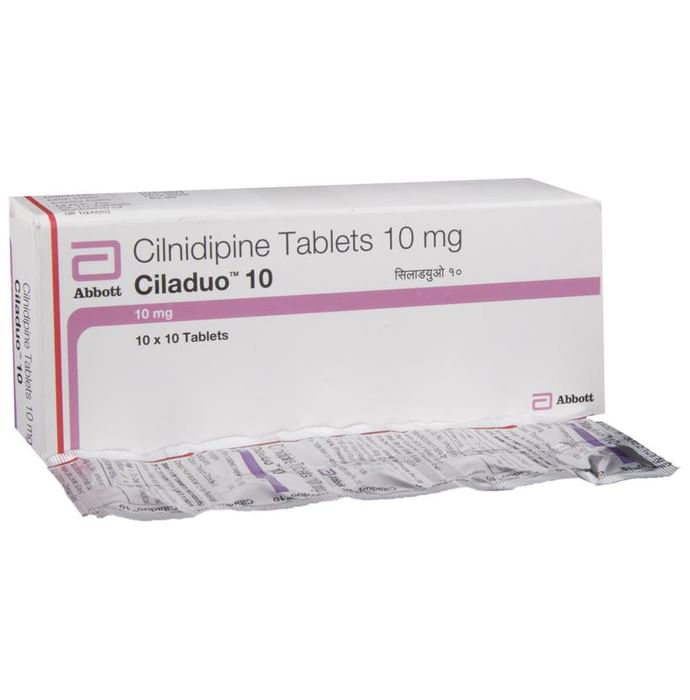 Ciladuo 10 Tablet is a medicine used to treat high blood pressure (hypertension). It belongs to a class of medicines known as a calcium channel blocker which helps to lower blood pressure. This helps prevent heart attacks and strokes. It may also be prescribed to prevent angina (heart-related chest pain). Ciladuo 10 Tablet may be prescribed alone or along with other medicines. The dose depends on the severity of your condition. You can take it at any time of day, with or without food, but it is best to take it at the same time each day. Keep taking it for as long as advised by your doctor. Do not stop this medicine on your own, even if you feel well because high blood pressure often has no symptoms. This makes it hard to identify any sudden spike and if you stop taking it, your condition may get worse. Keeping active with regular exercise, reducing your weight, and eating a healthy diet will also help control your blood pressure. Follow your doctor’s advice while taking this medicine. The most common side effects include fatigue, edema (swelling in the feet), sleepiness, dizziness, flushing, the unusual beating of the heart (palpitations), and headache. Consult your doctor if any of these bother you, or do not go away. Side effects like swelling in the feet or ankles and palpitations are lesser in severity than other similar medicines of the group. Studies have shown that it also has a protective effect on the kidneys. Before taking it, let your doctor know if you have any liver, kidney, or heart problems. Pregnant or breastfeeding women should also consult their doctor for advice before taking this medicine. You also need to tell your doctor what other medicines you are taking, especially those used to treat high blood pressure or heart conditions. You should have your blood pressure checked regularly to make sure that this medicine is working properly.