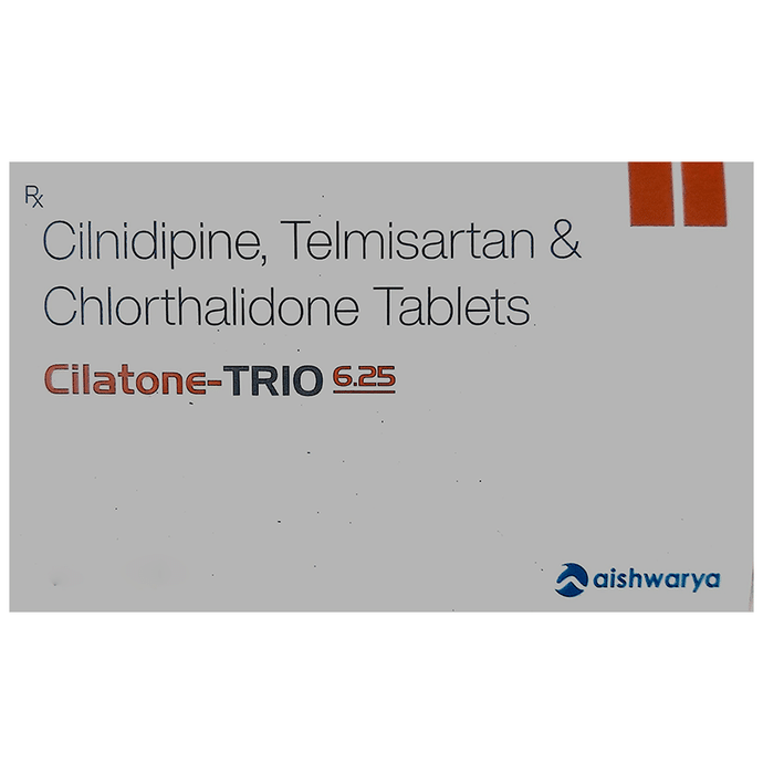 Cilatone-Trio 6.25 Tablet is a combination of medicines used to treat hypertension (high blood pressure) when a single medication is not effective. It helps to lower high blood pressure thus reduces chances of future heart attack and stroke. Cilatone-Trio 6.25 Tablet should be taken with food. The dose will depend on your condition and how you respond to the medicine. Try to take it at the same time each day. It is important to keep taking this medicine until your doctor tells you not to. It contains a diuretic (water pill) and will make you urinate more so, it is best to avoid taking this medicine within four hours of going to bed. Use this medicine regularly to get the most benefit from it even if you feel well. High blood pressure does not usually have symptoms and if you stop taking it your risk of heart attack or stroke may increase. The most common side effects of this medicine include ankle swelling, headache, dizziness, tiredness, and taste change. Consult your doctor If any of these bother you, or get worse, or won't go away. Drink plenty of fluids while taking medicine to overcome muscle weakness, dry mouth, and extreme thirst. Before taking it, let your doctor know if you have any liver or kidney problems. Pregnant or breastfeeding women should also consult their doctor for advice before taking this medicine. You also need to tell your doctor what other medicines you are taking especially those used to treat high blood pressure or heart conditions. You should have your blood pressure, kidney function, level of electrolytes, and blood sugar level checked regularly to make sure that this medicine is working properly.