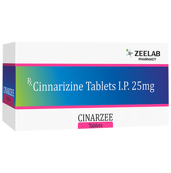 In Treatment of Motion sickness Motion sickness is a condition caused due to motion during travel. You may experience a spinning sensation (vertigo), nausea, or vomiting as a result of this condition. Cinarzee Tablet helps treat these symptoms effectively. Take it as prescribed by the doctor to get maximum benefit. In Treatment of Vertigo Vertigo means a spinning sensation or dizziness that is triggered due to frequent movement. It can happen due to many reasons but it may also occur without any underlying disease. Cinarzee Tablet helps treat this sensation effectively. If you feel dizzy while getting up from the bed, sit for a while, and then rise slowly to avoid having an accidental fall. In Treatment of Meniere's disease Cinarzee Tablet helps in improving blood flow to the inner ear which reduces the pressure of excess fluid there. It is this pressure that is thought to cause the symptoms of nausea, vertigo (dizziness), tinnitus (ringing in your ears), and hearing loss in people who have Meniere’s disease. Cinarzee Tablet makes the symptoms milder and reduces the number of times you get the symptoms. It will be more effective if you take this medicine regularly as prescribed so try not to miss doses. It may take a couple of weeks before you notice any improvements but keep taking it, even if you do feel better, until your doctor advises it is safe to stop.
