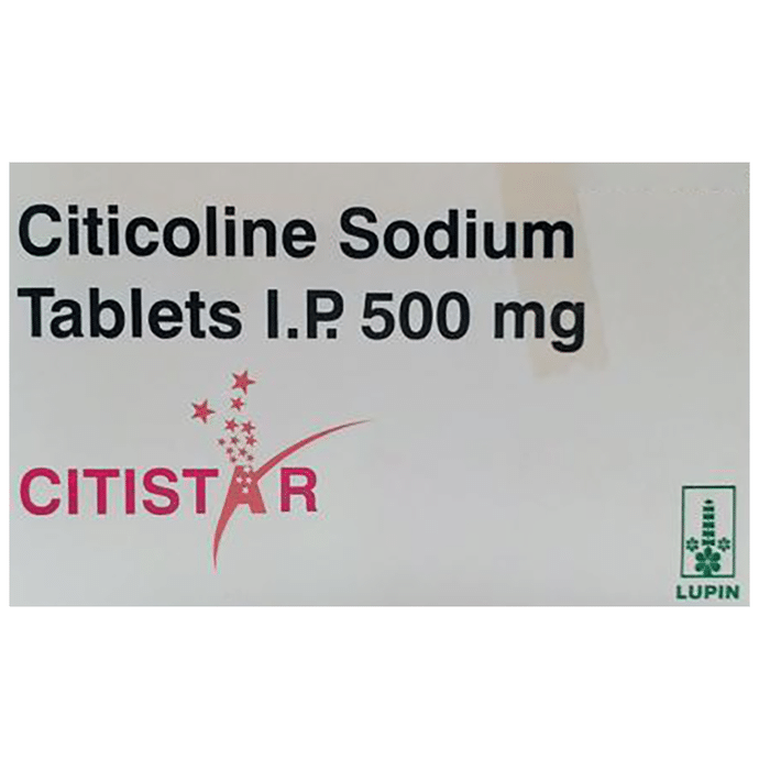 Citistar Tablet helps in the treatment of stroke, head injury, Alzheimer's disease, and memory loss (dementia) in Parkinson's disease. It protects the nerve cells in the brain from damage and also helps to repair the damaged nerve cells. Citistar Tablet may be taken with or without food. However, it is advised to take it at the same time each day as this helps to maintain a consistent level of medicine in the body. Your dose depends on your age and the condition you are being treated for. Take this medicine in the dose and duration as advised by your doctor. Do not stop taking it suddenly without talking to your doctor as it may worsen your symptoms. Some common side effects that may be seen with this medicine include decreased blood pressure, stomach pain, diarrhea, and irregular heart rate. However, these are temporary and usually resolve on their own. Please consult your doctor if these do not subside or bother you. Before taking this medicine, inform your doctor if you ever had any problems with your kidneys or if you have or ever had any seizures (epilepsy or fits). Always let your doctor know about all the medicines that you are taking before you start with your treatment. Inform your doctor if you are pregnant, planning to conceive or breastfeeding, before using this medicine.