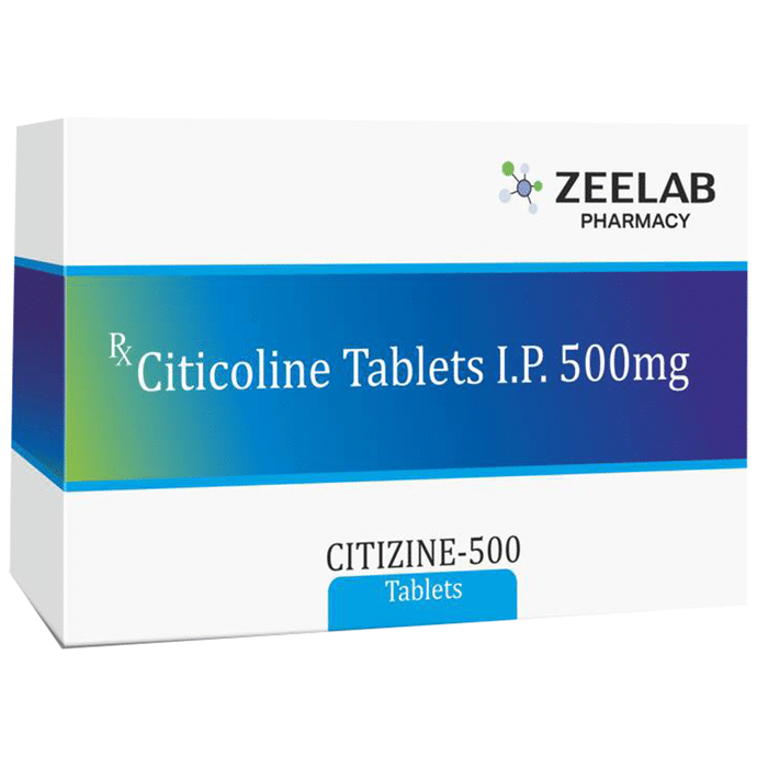 Citizine 500 Tablet helps in the treatment of stroke, head injury, Alzheimer's disease, and memory loss (dementia) in Parkinson's disease. It protects the nerve cells in the brain from damage and also helps to repair the damaged nerve cells. Citizine 500 Tablet may be taken with or without food. However, it is advised to take it at the same time each day as this helps to maintain a consistent level of medicine in the body. Your dose depends on your age and the condition you are being treated for. Take this medicine in the dose and duration as advised by your doctor. Do not stop taking it suddenly without talking to your doctor as it may worsen your symptoms. Some common side effects that may be seen with this medicine include decreased blood pressure, stomach pain, diarrhea, and irregular heart rate. However, these are temporary and usually resolve on their own. Please consult your doctor if these do not subside or bother you. Before taking this medicine, inform your doctor if you ever had any problems with your kidneys or if you have or ever had any seizures (epilepsy or fits). Always let your doctor know about all the medicines that you are taking before you start with your treatment. Inform your doctor if you are pregnant, planning to conceive or breastfeeding, before using this medicine.