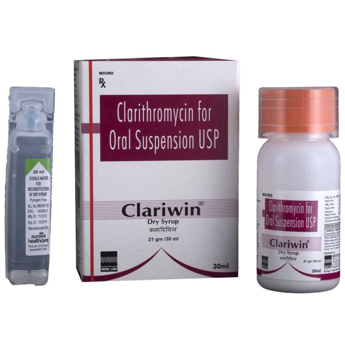 In Treatment of Bacterial infections Clariwin Dry Syrup is an antibiotic medicine that can be used to treat many different infections caused by bacteria. These include infections of the respiratory tract, ear, nose, throat, lungs, and skin. It is also effective against a bacteria known as H. pylori, which is associated with peptic ulcer disease. It stops further growth of the bacteria causing the infection and helps treat your infection. This medicine usually makes you feel better quite quickly. However, you should continue taking it as long as it is prescribed even when you feel better, to make sure that all bacteria are killed and do not become resistant.