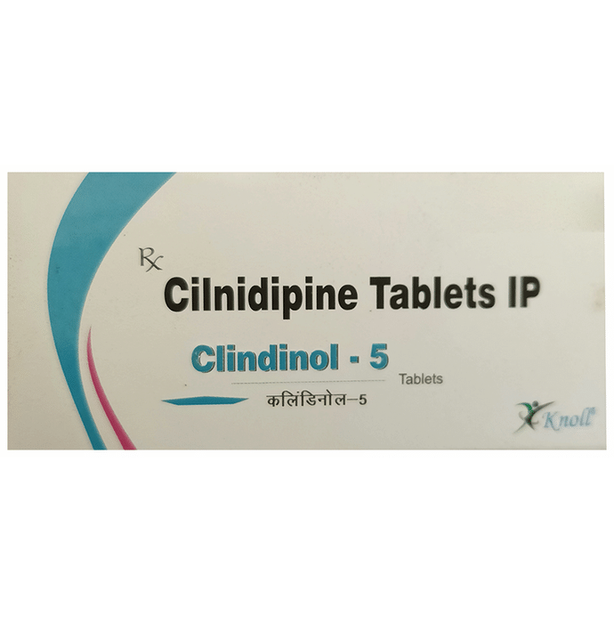 Clindinol 5 Tablet is a medicine used to treat high blood pressure (hypertension). It belongs to a class of medicines known as a calcium channel blocker which helps to lower blood pressure. This helps prevent heart attacks and strokes. It may also be prescribed to prevent angina (heart-related chest pain). Clindinol 5 Tablet may be prescribed alone or along with other medicines. The dose depends on the severity of your condition. You can take it at any time of day, with or without food, but it is best to take it at the same time each day. Keep taking it for as long as advised by your doctor. Do not stop this medicine on your own, even if you feel well because high blood pressure often has no symptoms. This makes it hard to identify any sudden spike and if you stop taking it, your condition may get worse. Keeping active with regular exercise, reducing your weight, and eating a healthy diet will also help control your blood pressure. Follow your doctor’s advice while taking this medicine. The most common side effects include fatigue, edema (swelling in the feet), sleepiness, dizziness, flushing, the unusual beating of the heart (palpitations), and headache. Consult your doctor if any of these bother you, or do not go away. Side effects like swelling in the feet or ankles and palpitations are lesser in severity than other similar medicines of the group. Studies have shown that it also has a protective effect on the kidneys. Before taking it, let your doctor know if you have any liver, kidney, or heart problems. Pregnant or breastfeeding women should also consult their doctor for advice before taking this medicine. You also need to tell your doctor what other medicines you are taking, especially those used to treat high blood pressure or heart conditions. You should have your blood pressure checked regularly to make sure that this medicine is working properly.