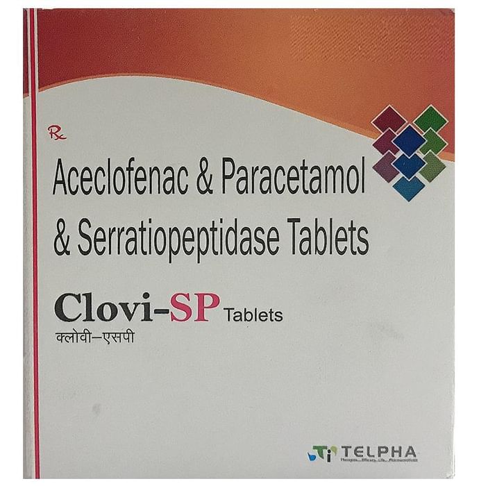 In Pain relief Clovi-SP Tablet is a combination medicine used for short-term relief of pain, inflammation, and swelling in conditions affecting joints and muscles. It works by blocking chemical messengers in the brain that tell us we have pain. It can help relieve pain in conditions like rheumatoid arthritis and osteoarthritis. Along with painkillers, this medicine also contains an active ingredient called Serratiopeptidase, which is an enzyme that promotes the overall healing process and speeds up recovery. Take it as it is prescribed to get the most benefit. Do not take more or longer than needed as that can be dangerous. In general, you should take the lowest dose that works, for the shortest possible time. This will help you to go about your daily activities more easily and have a better, more active, quality of life.