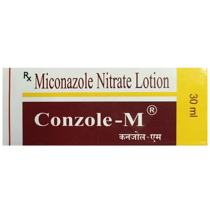 Conzole-M Lotion is an antifungal medicine used to treat fungal infections of the skin. It works by killing the fungus that causes infections such as athlete’s foot, jock itch, thrush, ringworm, and dry, flaky skin. Conzole-M Lotion should be used in the dose and duration as prescribed by your doctor. This medicine should be used regularly to get the most benefit from it. Do not use more than you needed, it will not clear your condition faster and may only increase the side effects. Skin infections will usually get better after 2 to 6 weeks. Do not use the medicine for longer than your doctor has told you to and let him or her know if your condition does not improve after 2 to 6 weeks of treatment. The effects of the medicine can be increased by keeping the affected area clean and dry, and washing hands before and after treating the infection. If you have an athlete’s foot, wash your socks or tights thoroughly and change your shoes daily if possible. The most common side effects of using this medicine include burning sensation, irritation, itching, and redness at the site of application. It may also cause dryness, peeling, or blistering of the skin. These are not usually serious, but you should call your doctor if you think you might have a severe allergic reaction. Signs of this include rash, swelling of the lips, throat, or face, swallowing or breathing problems, feeling dizzy or faint, and nausea. Get emergency help if this happens. Avoid direct contact with your eyes. In case of direct contact, wash your eyes with water and seek immediate medical attention. It is not likely that other medicines you take by mouth or injection will affect the way this medicine works, but talk to your doctor before using it if you have recently used another medicine that contains a steroid or had an allergic reaction to another antifungal medicine. This medicine should only be used if it is clearly needed if you are pregnant or breastfeeding. Ask your doctor if it is safe.