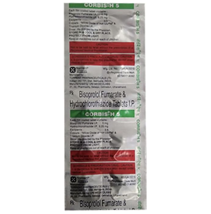 Corbis-H 5 Tablet is a combination of two medicines used to treat hypertension (high blood pressure). It helps to control blood pressure when a single medication is not effective. It also helps to reduce chances of any future heart attack and stroke. Corbis-H 5 Tablet is taken with or without food preferably in the morning to avoid frequent urination at night. Keep taking it for as long as advised by your doctor. Even if you feel well, do not stop this medicine on your own because high blood pressure often has no symptoms. If you stop taking it, your condition may get worse. Keeping active with regular exercise, reducing your weight and eating a healthy diet will also help control your blood pressure. Follow your doctor’s advice while taking this medicine. Nausea, constipation, diarrhea, and fatigue are some common side effects of this medicine. Consult your doctor If any of these bother you, or get worse, or Do not go away. Drink plenty of fluids while taking medicine to overcome muscle weakness, dry mouth and extreme thirst. Dizziness or headache may occur due to low blood pressure but this gets better with time. Before taking it, let your doctor know if you have any liver or kidney problems. Pregnant or breastfeeding women should also consult their doctor for advice before taking this medicine. You also need to tell your doctor what other medicines you are taking especially those used to treat high blood pressure or heart conditions. You should have your blood pressure, kidney function, blood sugar level and the levels of salts such as potassium or magnesium checked regularly to make sure that this medicine is working properly.