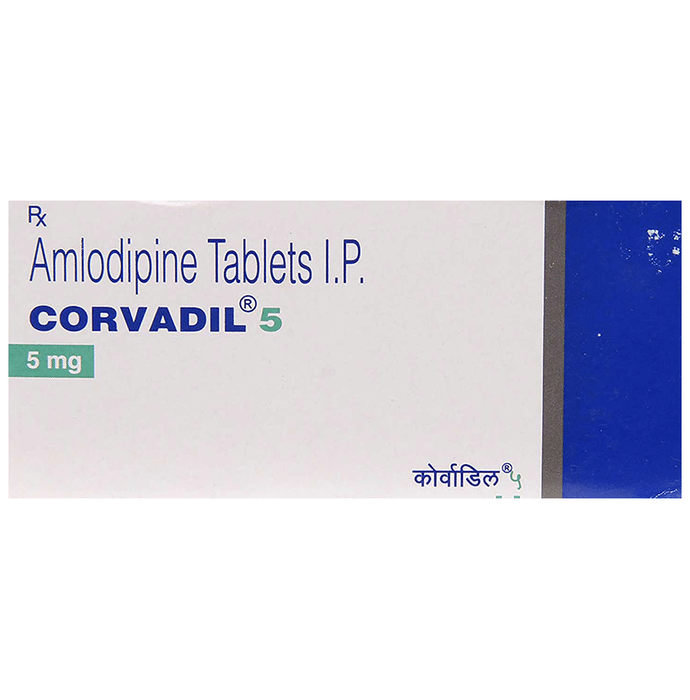 Corvadil 5 Tablet belongs to a class of medicines known as calcium channel blockers. It is used to treat high blood pressure (hypertension) and prevent angina (heart-related chest pain). It lowers blood pressure and reduces the heart's workload, which helps prevent heart attacks and strokes. Corvadil 5 Tablet may be prescribed alone or along with other medicines. The dose depends on what you are taking it for and the severity of your condition. You can take it at any time of the day, with or without food, but it is best to take it at about the same time each day. You should take this medicine for as long as it is prescribed for you. Even if you feel well, do not stop this medicine on your own because high blood pressure often has no symptoms. If you stop taking it, your condition may get worse. Keeping yourself active with regular exercise, managing your weight, and eating a healthy diet will also help control your blood pressure. The most common side effects include headache, fatigue, nausea, abdominal pain, and sleepiness. Consult your doctor if any of these side effects bother you or do not go away. They may be able to suggest ways to prevent or reduce the side effects. Before taking it, let your doctor know if you have any liver, heart, or kidney problems. Pregnant or breastfeeding women should also consult their doctor before taking this medicine. You also need to tell your doctor about all the other medicines you are taking, especially those used to treat high blood pressure or heart conditions. You should have your blood pressure checked regularly to make sure that this medicine is working properly.