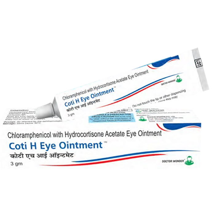 Coti H Eye Ointment is a medicine used to treat bacterial eye infections. It kills and prevents the growth of infection-causing bacteria in the eyes. This way it relieves the symptoms and speeds up the healing process. Coti H Eye Ointment is to be used only in the affected eye. Read the label carefully for instruction before you use the medicine. Use it in the exact dose and duration as advised by the doctor or as instructed in the label. Wash your hands before using this medicine. Do not use too much or too little. Complete your dose and do not stop using the medicine even if you feel better until the doctor says it is alright to stop. Use of this medicine may cause burning sensation, stinging, and irritation at the application site. These are usually temporary and resolve with time. However, if they persist or get worse, inform your doctor. In case of accidental contact with your ears, nose, or mouth, immediately rinse it with water. Inform your doctor if you have a known allergy to any of the ingredients in this medicine or if you are taking any other medication. It is advised not to drive or operate heavy machinery immediately after using this medicine as it may cause temporary blurring of vision and may affect your ability to drive.