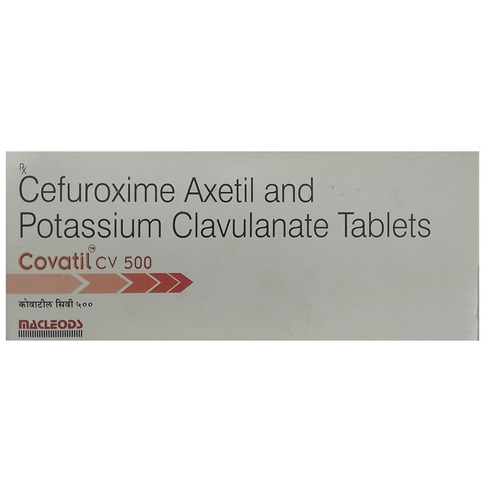 In Treatment of Bacterial infections Covatil CV 500 Tablet contains two different medicines, Cefuroxime and Clavulanic Acid, that work together to kill the bacteria that cause infections. Cefuroxime works by stopping the growth of bacteria. Clavulanic Acid reduces resistance and enhances the activity of Cefuroxime against bacteria. This combination medicine can be used to treat many different bacterial infections such as ear, sinus, throat, lung, urinary tract, skin and soft tissues. It usually makes you feel better within a few days, but you should continue taking it as prescribed even when you feel better to make sure that all bacteria are killed and do not become resistant.