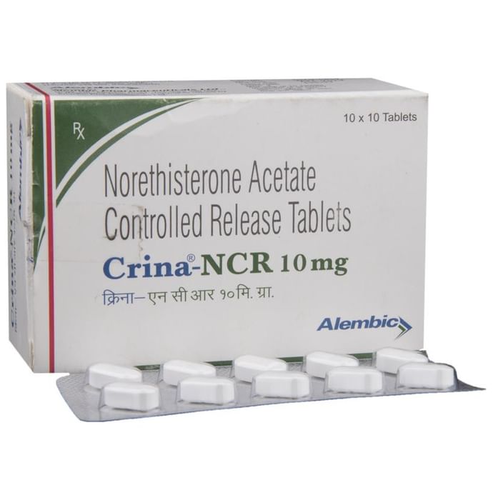 Crina-NCR 10mg Tablet is used to treat various menstrual problems including painful, heavy, or irregular periods, premenstrual syndrome (PMS), and a condition called endometriosis. It is a man-made version of the natural female sex hormone progesterone. Crina-NCR 10mg Tablet may be taken with or without food, but it is better to take it at the same time each day. The dose and how often you take it depends on what you are taking it for. Your doctor will decide how much you need so as to improve your symptoms. Swallow the tablets whole with a drink of water. You should take this medicine for as long as it is prescribed to you. The most common side effects of this medicine include headache, nausea, abdominal pain, vaginal spotting, dizziness, and breast tenderness. Let your doctor know if these bother you or appear serious, as there may be ways of reducing or preventing them. Some side effects may mean you should stop taking this medicine, including if you develop jaundice, migraine, or changes to your speech or senses (eyesight, hearing, smell, taste, and touch). You should also stop taking it if you become pregnant or if your blood pressure becomes too high. Before taking this medicine, tell your doctor if you are pregnant or breastfeeding, have diabetes, have a migraine, or any liver disease or ever had any problems with your blood circulation. Your doctor should also know about all other medicines you are taking as many of these may make this medicine less effective or change the way it works. This medicine can affect the results of some blood and urine tests so make sure any doctor treating you knows that you are taking it.