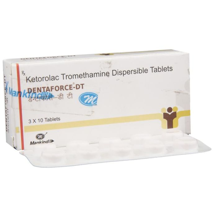 Dentaforce-DT Tablet is used for the short-term treatment of moderate to severe pain. It effectively alleviates pain, inflammation, and fever. It should not be used for mild or long-term painful conditions. Dentaforce-DT Tablet should be taken in the dose and duration as advised by your doctor. It should be taken with food to prevent stomach upset. Dissolve it in a glass of water before taking it. Inform your doctor if you have any history of heart disease or stroke. Vomiting, stomach pain, nausea, and indigestion are some of the common side effects of this medicine. It may also cause dizziness, drowsiness, or visual disturbances. Long-term use may lead to serious complications such as stomach bleeding and kidney problems. Your doctor may regularly monitor your kidney function, liver function, and levels of blood components if you are taking this medicine for long-term treatment.
