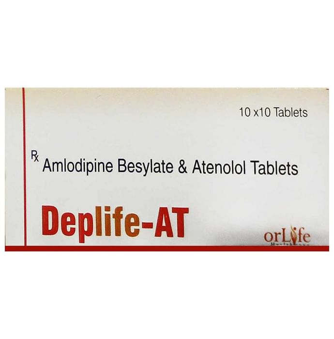 In Treatment of Hypertension (high blood pressure) Deplife-AT Tablet is a combination medicine that contains two active ingredients, Amlodipine and Atenolol. Both of the medicines in this combination work to lower blood pressure but in different ways. Together they help to relax blood vessels, reduce heart rate and make it easier for your heart to pump blood around your body. This lowers blood pressure. If your blood pressure is controlled you are less at risk of having a heart attack, stroke or kidney problems. The medicine must be taken regularly as prescribed to be effective. You do not usually feel any direct benefit from taking this medicine, but it works in the long term to keep you well. You should also make appropriate lifestyle changes (such as eating healthy and staying active) to maximize the effectiveness of this medicine.