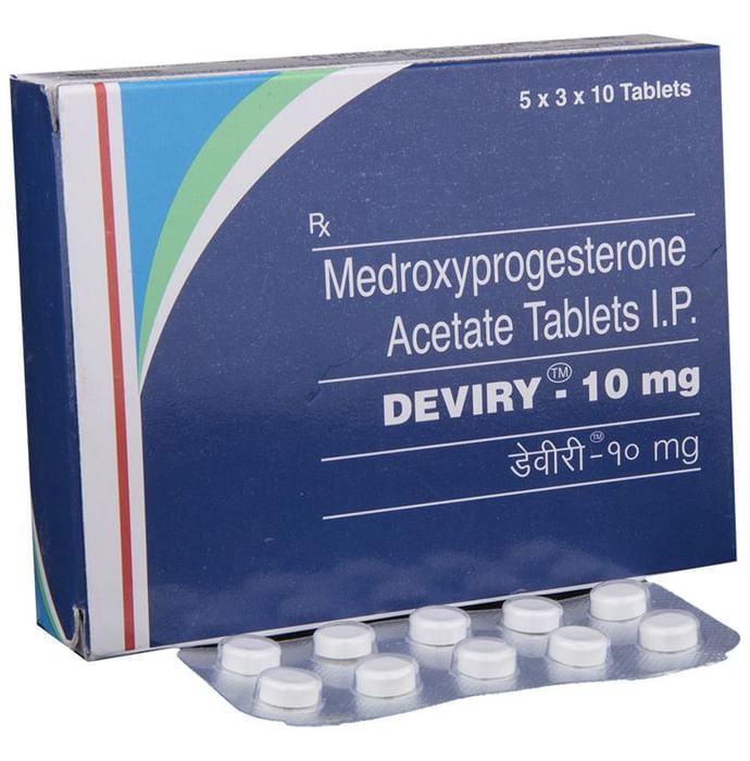 Deviry 10mg Tablet is similar to the progesterone hormone naturally produced by the body. It regulates periods, stops irregular bleeding, and helps with withdrawal bleeding in cases of amenorrhea (unusual stopping of menstrual periods). Deviry 10mg Tablet should be taken as your doctor's advice. Your doctor will decide how much you need to take and for how much time. You may take it with or without food but better to take it at a fixed time. You should take this medicine for as long as it is prescribed for you. The most common side effects of this medicine include headache, abdominal pain, weakness, and dizziness. If any of these bothers you, let your doctor know. There may be ways of reducing or preventing them. It may also cause irregular periods, bleeding, or spotting in between menstrual periods. Let your doctor know if this occurs frequently. Before taking this medicine you must let your doctor know if you ever had any problems like bleeding or have a history of blood clots, stroke, heart attack, liver problems, or bleeding problems. Your doctor should also know about all other medicines you are taking as many of these may make this medicine less effective or change the way it works. Pregnant and breastfeeding women should not take this medicine.