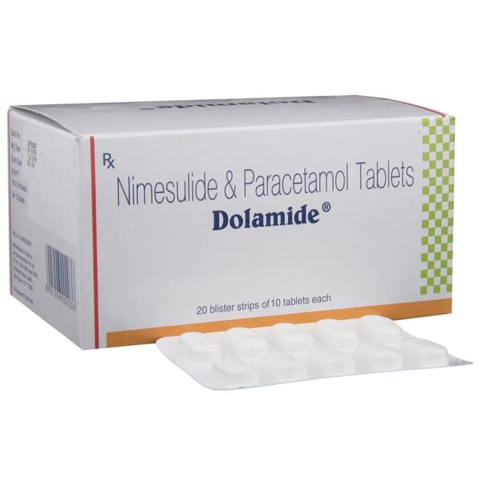 Dolamide Tablet is a combination medicine that helps in relieving pain. It is used to relieve pain and inflammation in conditions like rheumatoid arthritis, ankylosing spondylitis, and osteoarthritis. It is also used to relieve fever, muscle pain, back pain, toothache, or pain in the ear and throat. Dolamide Tablet should be taken with food. This will prevent you from getting an upset stomach. The dose will depend on what you are taking it for and how well it helps your symptoms. You should take it as advised by your doctor. Do not take more or use it for a longer duration than recommended by the doctor. The most common side effects of this medicine include nausea, vomiting, diarrhea, and increased liver enzymes. If any of these side effects bother you or get worse, you should speak to your doctor. Your doctor may be able to suggest ways of preventing or reducing the side effects. Before taking it, you should let your doctor know if you have a history of ulcer or bleeding in your stomach, high blood pressure, or have any trouble with your heart, kidneys, or liver. Let your doctor also know about all the other medicines you are taking because they may affect, or be affected by, this medicine. Pregnant or breastfeeding women should consult their doctor before starting treatment. You should also avoid drinking alcohol while you are taking this medicine, as alcohol can cause excessive drowsiness.