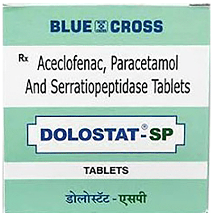 Dolostat SP Tablet is a combination medicine used to relieve pain and swelling in various conditions like muscle pain, joint pain, and postoperative pain. Thus, it effectively alleviates pain and inflammation in conditions like rheumatoid arthritis, ankylosing spondylitis, and osteoarthritis. Dolostat SP Tablet should be taken in the dose and duration as advised by your doctor. It should be taken with food or milk to prevent stomach upset. Taking the medicine regularly at the right times increases its effectiveness. It is important to keep taking the medicine regularly until your doctor tells you it is safe to stop. Nausea, vomiting, stomach pain, indigestion, heartburn, loss of appetite, and diarrhea are some of the common side effects that might be observed on taking this medicine. Your doctor may regularly monitor your kidney function, liver function, and levels of blood components if you are taking this medicine for long-term treatment. Long-term use may lead to serious complications such as stomach bleeding and kidney problems. Dolostat SP Tablet is not recommended if you are pregnant or breastfeeding.