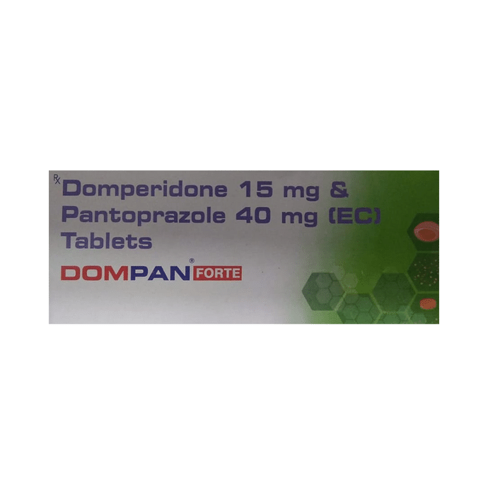 Dompan Forte Tablet is a prescription medicine used to treat gastroesophageal reflux disease (Acid reflux) and peptic ulcer disease by relieving the symptoms of acidity such as indigestion, heartburn, stomach pain, or irritation. Dompan Forte Tablet also neutralizes the acid in the stomach and promotes easy passage of gas to reduce stomach discomfort. It is taken without food in a dose and duration as advised by the doctor. The dose you are given will depend on your condition and how you respond to the medicine. You should keep taking this medicine for as long as your doctor recommends. If you stop treatment too early your symptoms may come back and your condition may worsen. Let your healthcare team know about all other medications you are taking as some may affect, or be affected by this medicine. The most common side effects are diarrhea, stomach pain, flatulence, dryness in the mouth, and headache. Most of these are temporary and usually resolve with time. Contact your doctor straight away if you are at all concerned about any of these side effects. This medicine may cause dizziness and sleepiness, so do not drive or do anything that requires mental focus until you know how this medicine affects you. Avoid drinking alcohol while taking this medicine as it can worsen your sleepiness. Lifestyle modifications like having cold milk and avoiding hot tea, coffee, spicy food, or chocolate can help you to get better results. Before you start taking this medicine it is important to inform your doctor if you are suffering from kidney or liver disease. You should also tell your doctor if you are pregnant, planning pregnancy, or breastfeeding.
